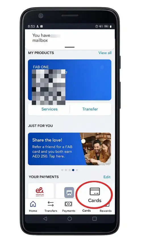 Ratibi Card Salary via FAB Mobile App